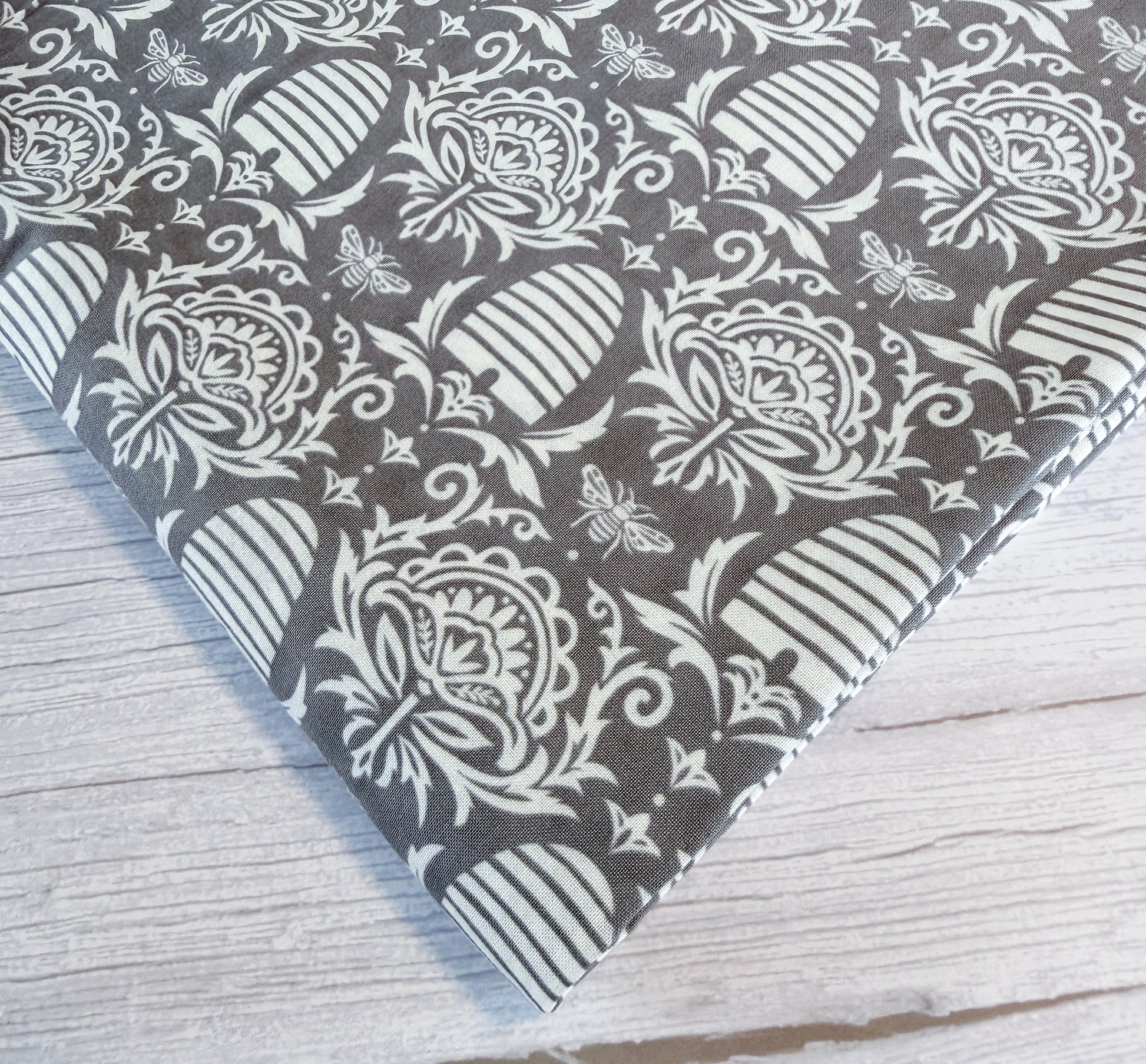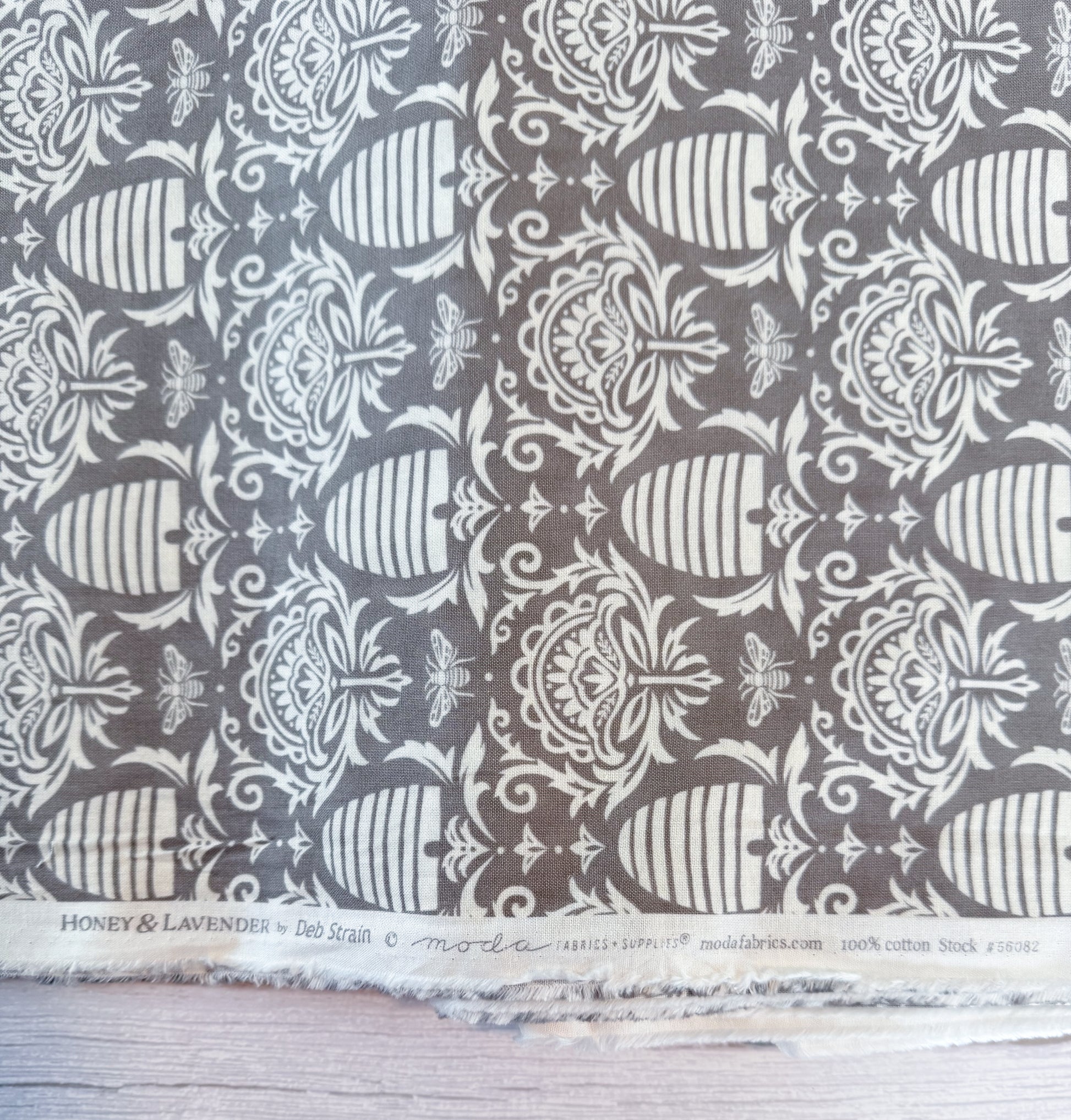 Moda Fabrics 100% cotton. Bee hive pattern in Grey by Deb Strain