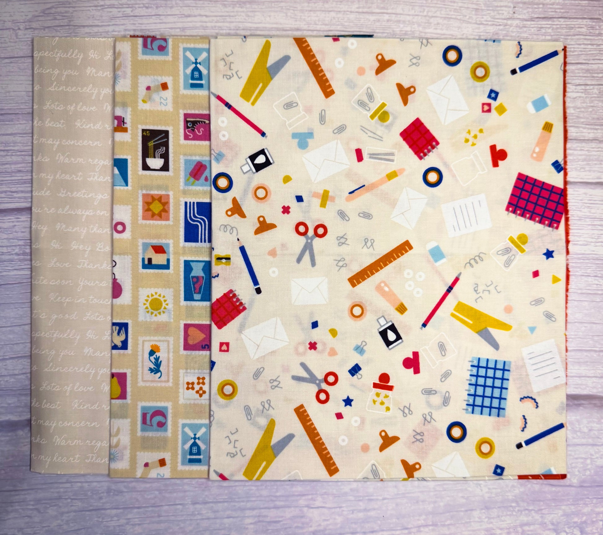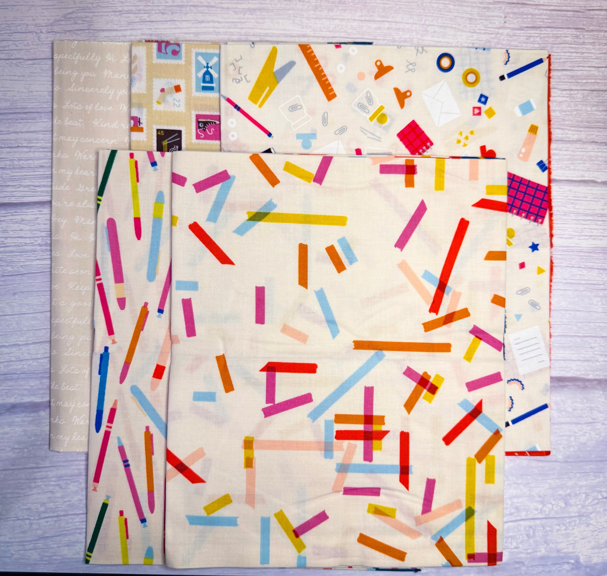 Fat quarter bundle with 5 pieces of Ruby Star Society's Salutations in the cream colorway.