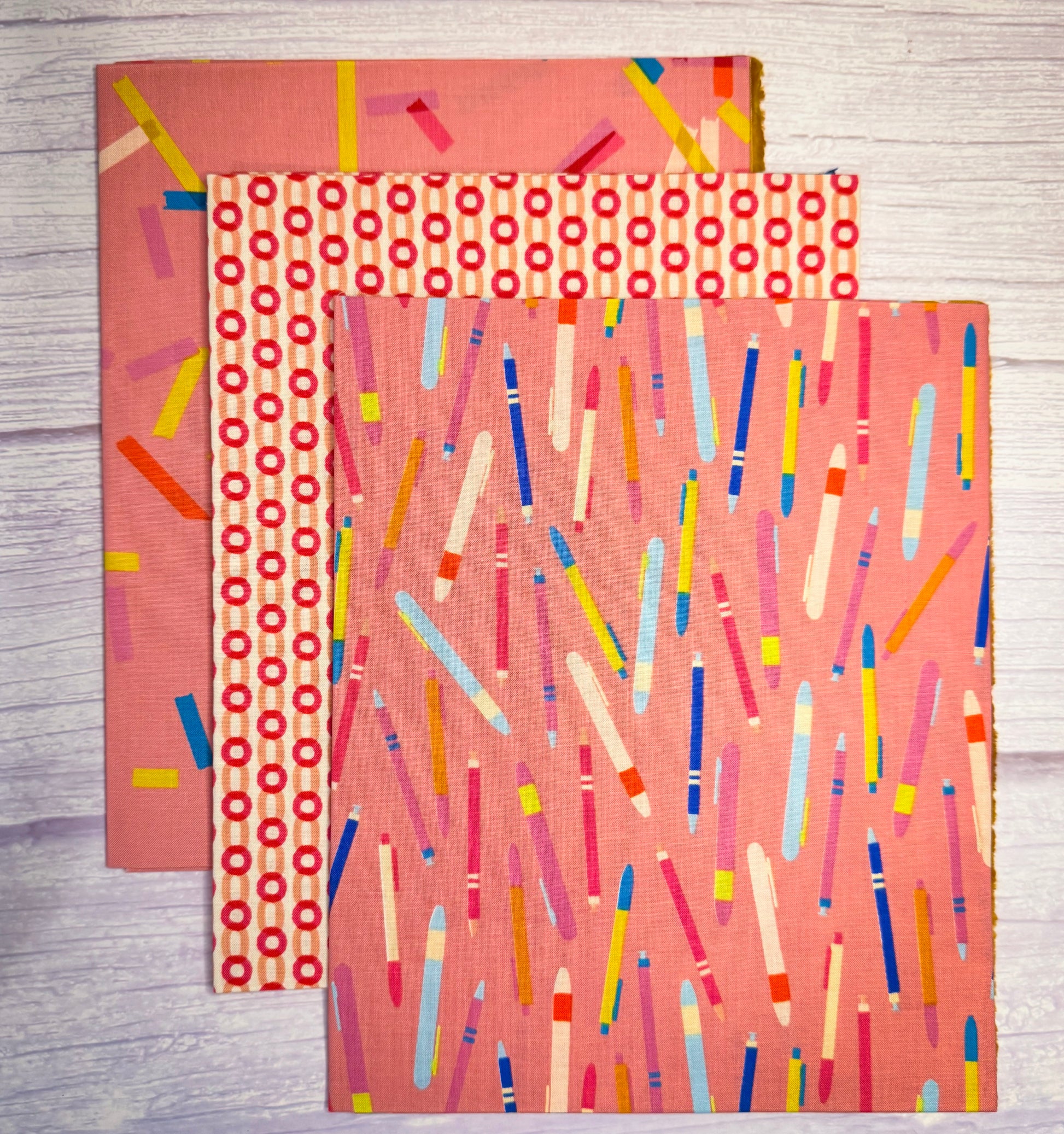 Fat quarter bundle of Ruby Star Society's Salutations in the pink & peach colorways.